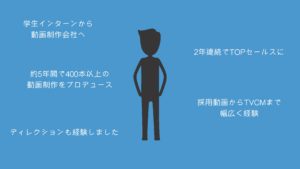 …など、動画というクリエイティブを軸に様々な案件に携わらせて頂き、純粋な動画制作の本数としては約400本ほどの制作に携わってきました。